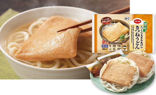 コシのある麺に甘い味付けの大判あげをのせ、出汁のきいたつゆをセットしました。 12カ月