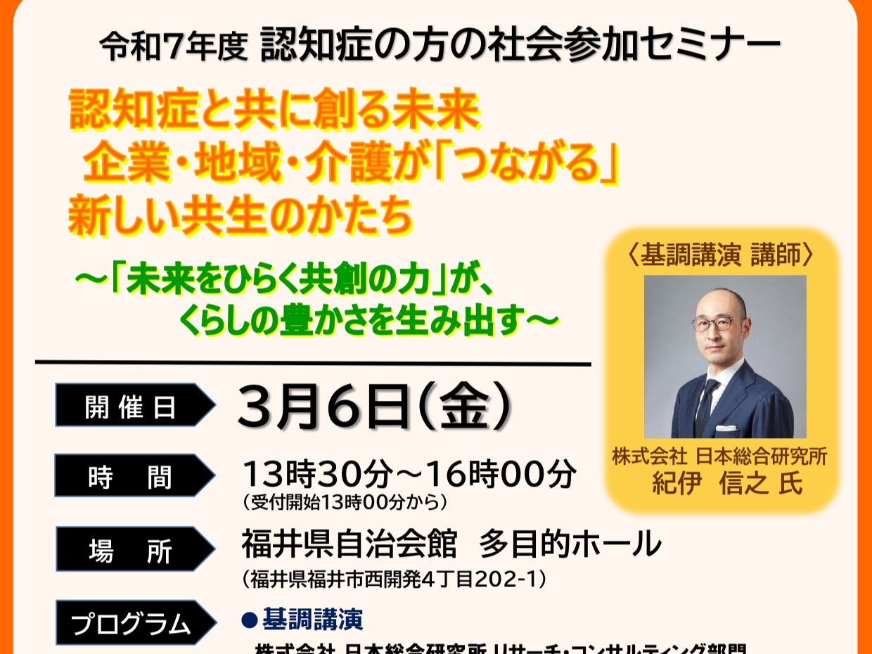 【〆切延長!3/4(水)まで】認知症の方の社会参加セミナー開催のお知らせ