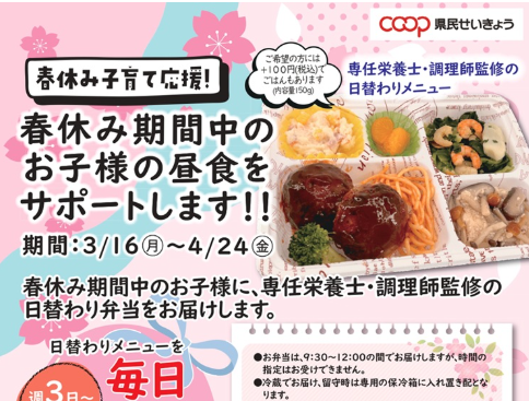春休み期間中のお子さまの昼食をサポートします!