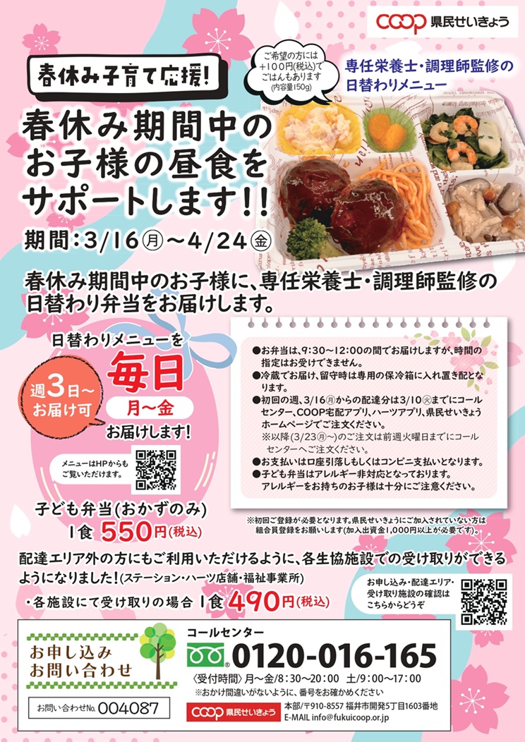 春休み期間中のお子さまの昼食をサポートします!