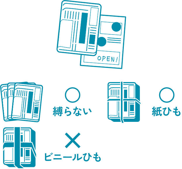 - 折りたたんで縛らずに、ダンボール専用回収ボックスに入れてください。
