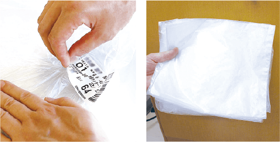 注文カタログの袋 - シールは外し、折りたたんでください(袋は破れていてもOK)。