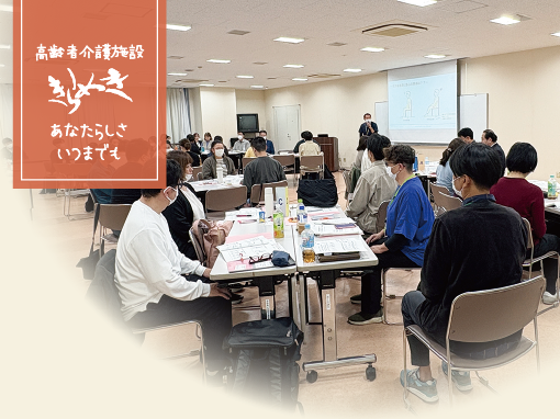 高齢者介護施設きらめきでは、全拠点で実践している取り組みを職員同士が共有し、グループ全体のサービスの質の向上と、根拠あるより良い介護実践につながることを目的に、毎年、事例研究・業務改善活動に取り組んでいます。
