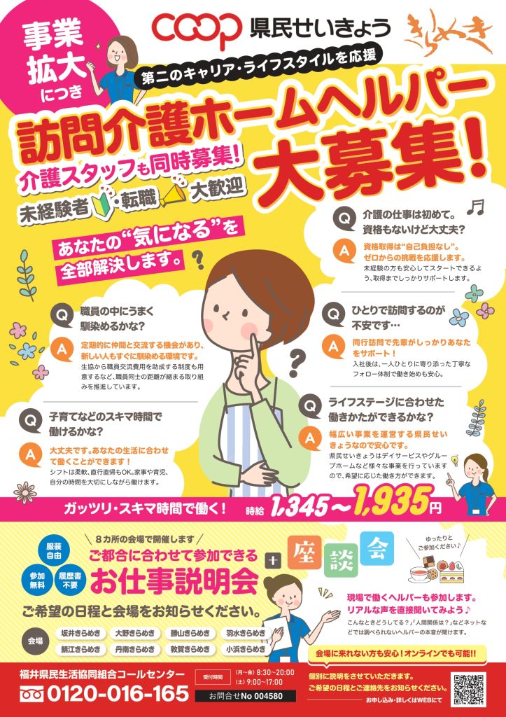 生協の事業だから安心!訪問介護ヘルパーのお仕事募集です。