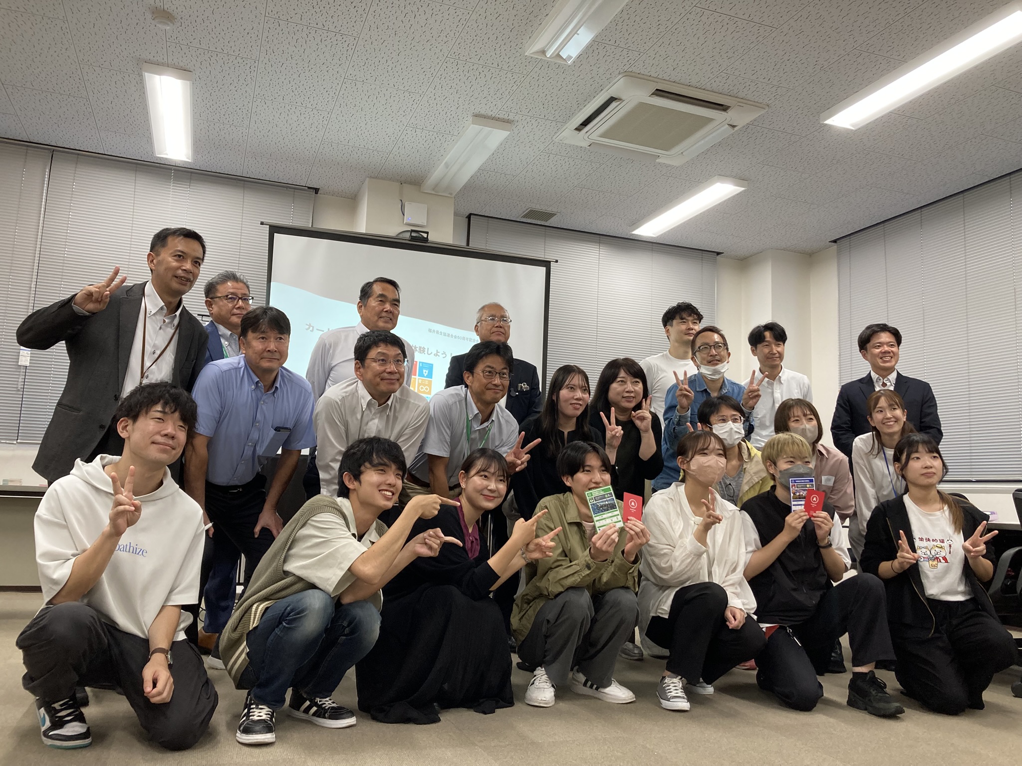 会員生協の役職員、組合員(福井大学の学生さん)26名が参加され 、SDGsの本質的な目標について理解を深め、2030年までの残された時間をどのように過ごしていけばよいのかを、カードゲームを通して考えよう、という催しです。