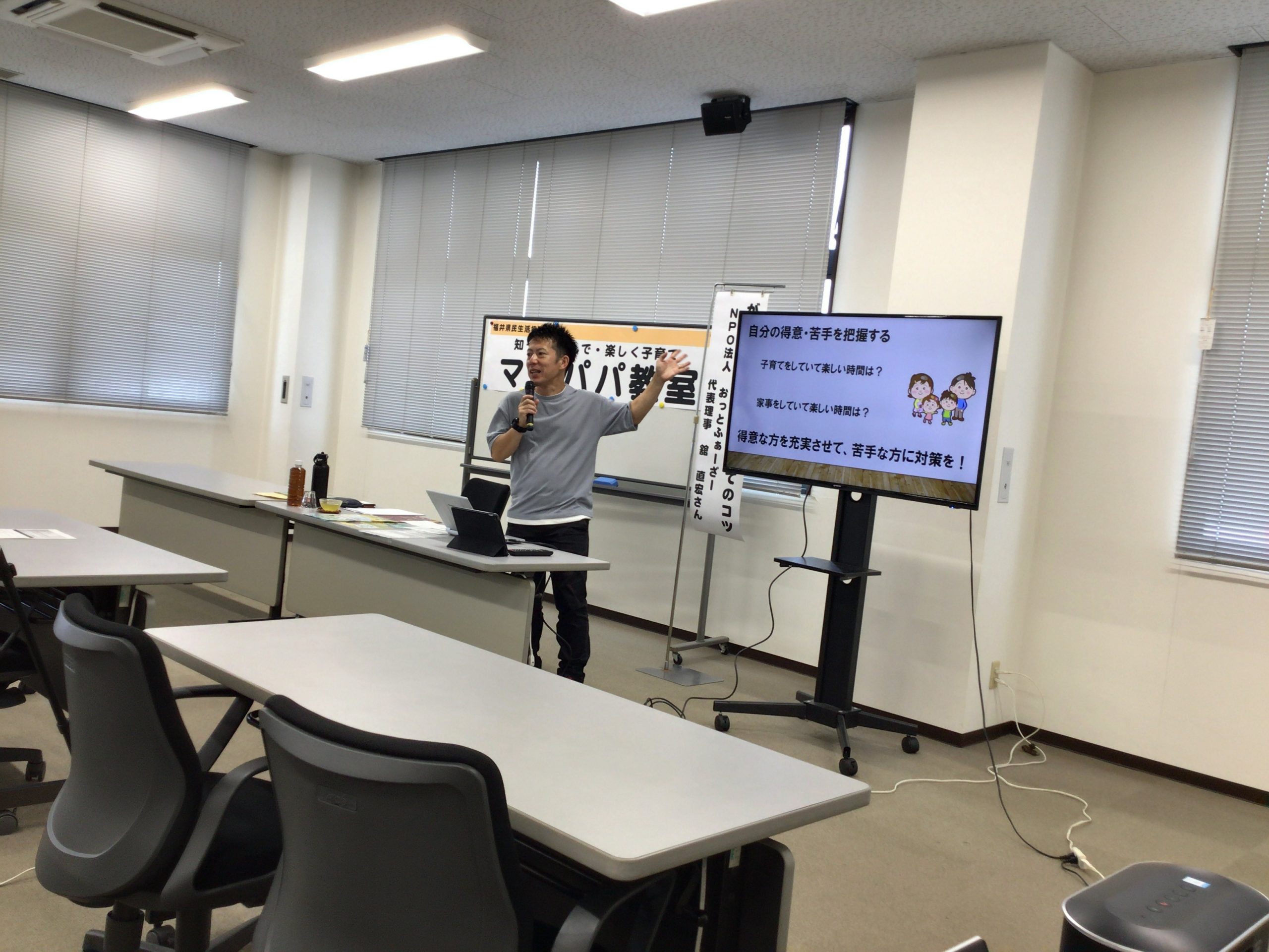 9月13日(土)、第2回目となるママパパ教室が、福井県民せいきょう本部センターで開催されました 。今回のテーマは「がんばりすぎない子育て」です。講師にはNPO法人おっとふぁーざー代表理事の舘 直宏さんをお迎えし、子育てや家事に奮闘するママやパパに向けて、心が軽くなるヒントをたくさんお話しいただきました 。
