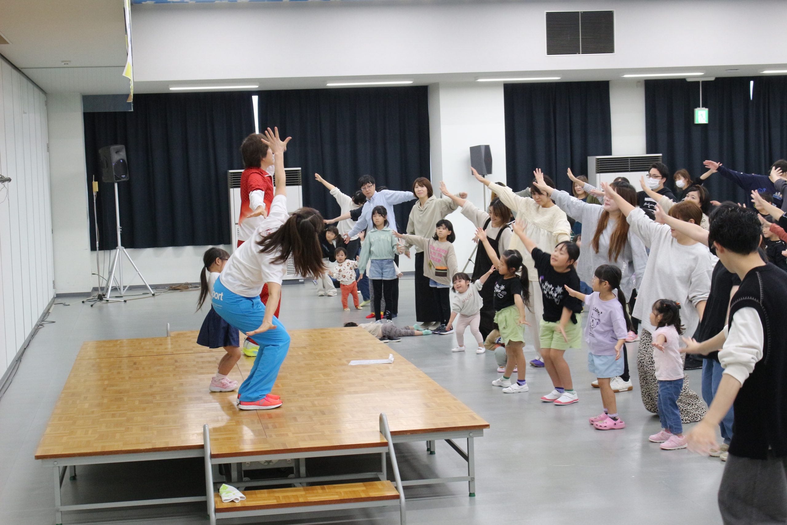 お兄さんのパワフルで楽しい体操に、子どもたちのテンションはもうMAX!パパやママも夢中になって、ダイナミックに体を動かしたり、ぎゅーっとハグしたり、親子の愛情が深まる素敵な時間になりましたね。