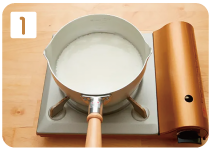 耐熱ボウルにミルクココア、シナモンパウダーを入れ、1を加え、泡立て器でよく混ぜる。