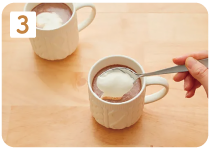 2をカップに注ぎ、緩めに泡立てた生クリームを上からスプーンでふわっとのせる。