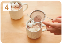- ホイップクリームやマシュマロをのせたリッチなドリンクで、自宅でカフェ気分を味わえます。