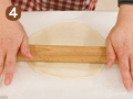 1の生地を3等分し、生地がくっつくようなら打ち粉(分量外)をして、めん棒で薄く丸く伸ばす。