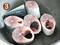 鯖は頭を切り落とし、腹ワタを取り除いて水で洗う。
