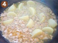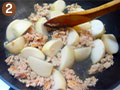 ひき肉の色が変わってきたらかぶを加え、炒め合わせる。