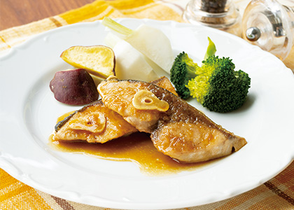 ぶりのガーリックバターソテー温野菜添え